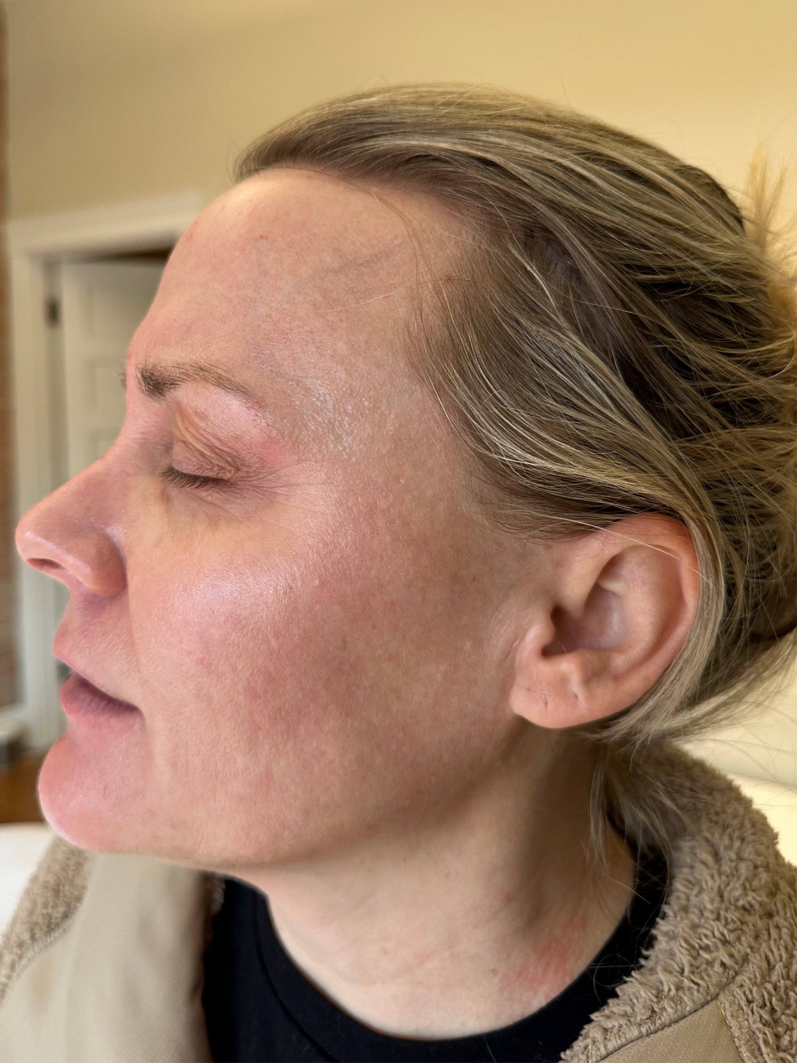 She enrolled in our Pigment Correcting Protocol—a dynamic, highly curated program designed to address pigment, clarity, and overall radiance. This approach combines clinical-grade homecare with in-studio peels, microneedling, and an evolving strategy that shifts in response to the skin’s healing rhythms.
